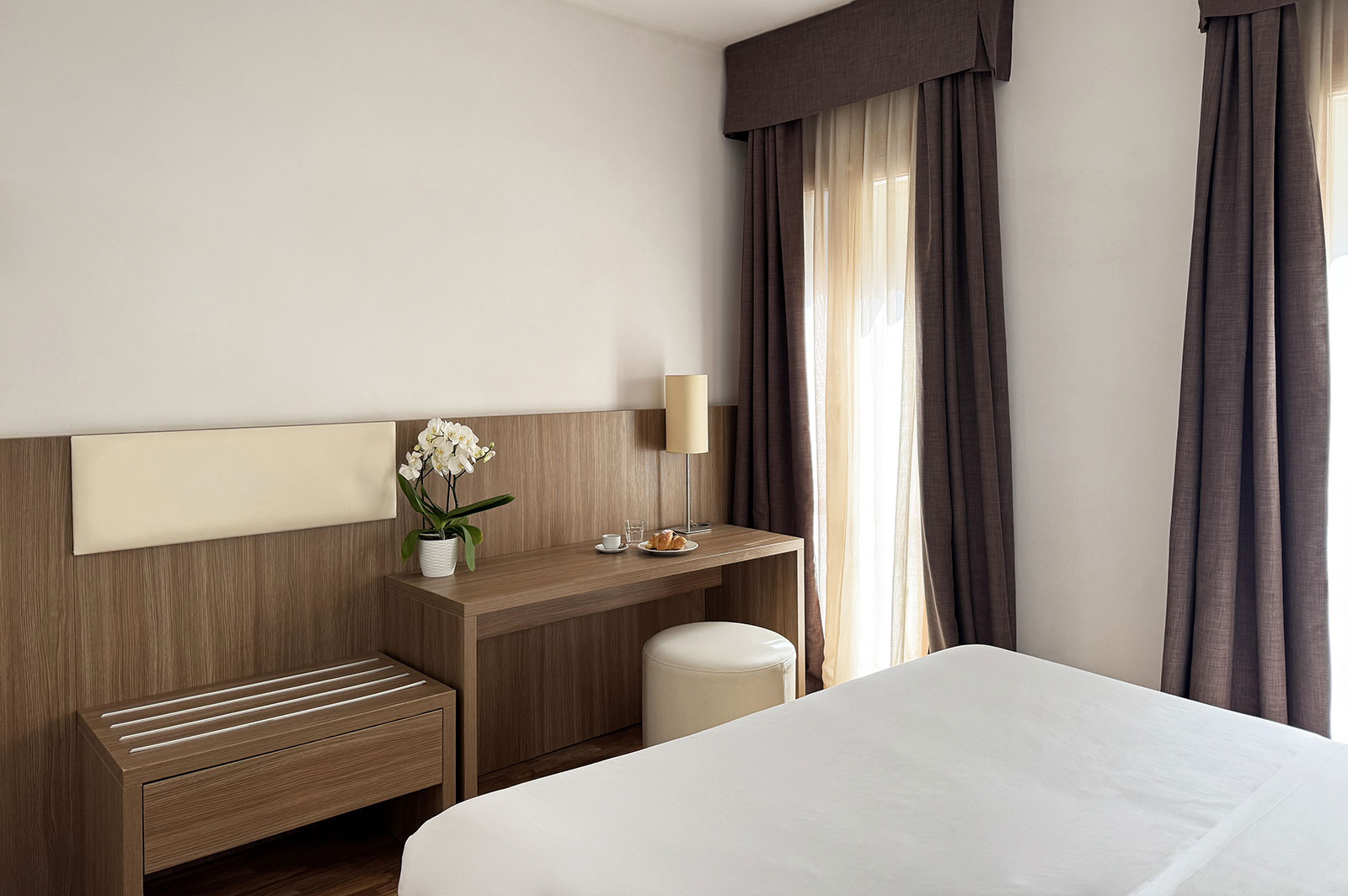 La semplicità delle camere si sposa perfettamente con la raffinata hall che affaccia sui vicoli del centro.